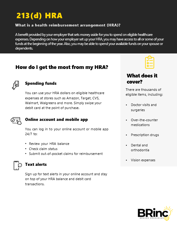 BRinc’s flexible platform makes it easy to manage a full range of pre-taxed spending accounts including Health Savings Accounts (HSA), Health Reimbursement Arrangements (HRA), Flexible Spending Accounts (FSA), Medical Expense Reimbursement Programs (MERP), Voluntary Employees’ Beneficiary Associations (VEBA) and more - all in one place. Proven Multi-Account Coordination and easy online enrollment make the process seamless for both employees and employers alike.